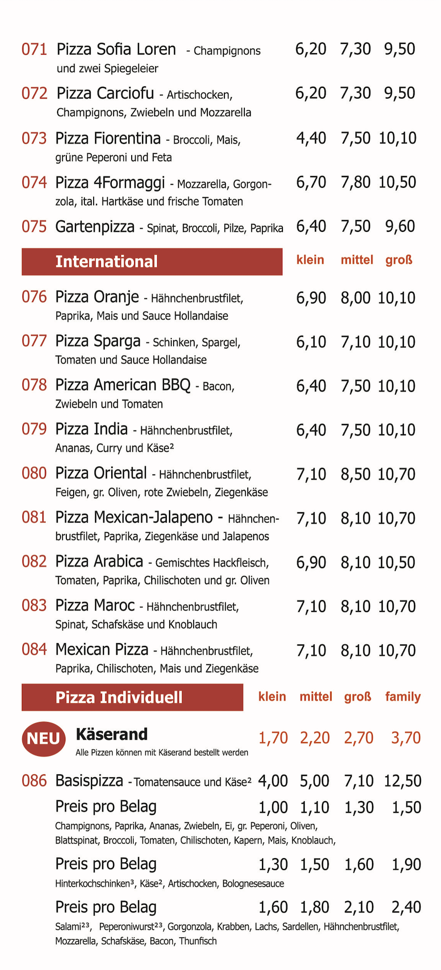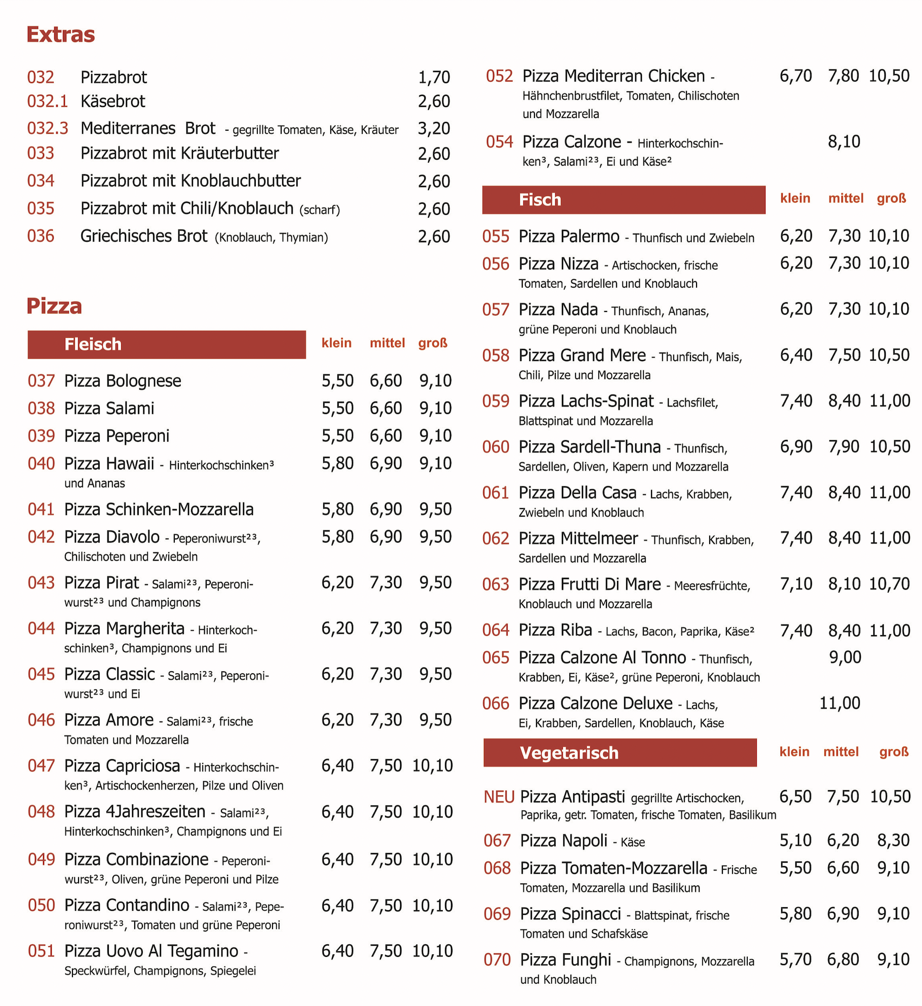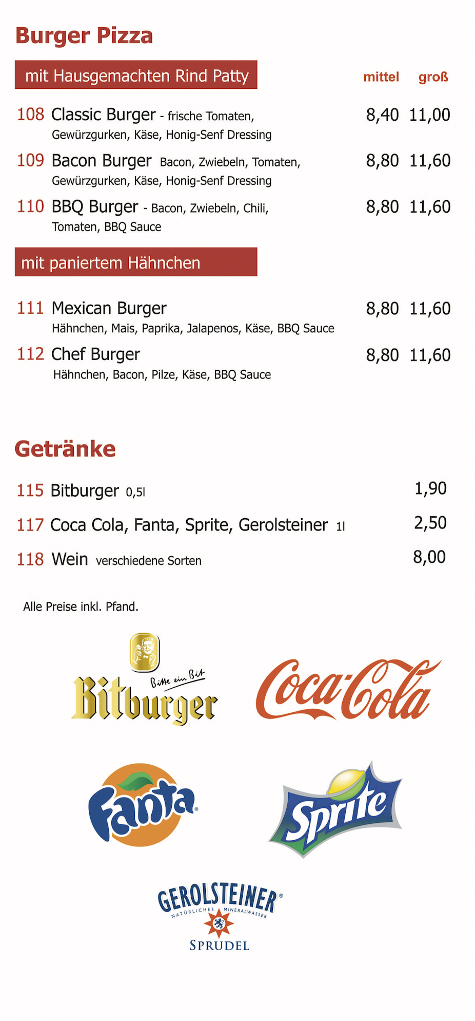 Unsere Speisekarte